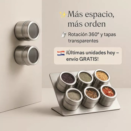 AHORRA Gs. 32.000Porta Condimentos Magnético de Inox 6 pzas 🚨ÚLTIMAS UNIDADES 🚨